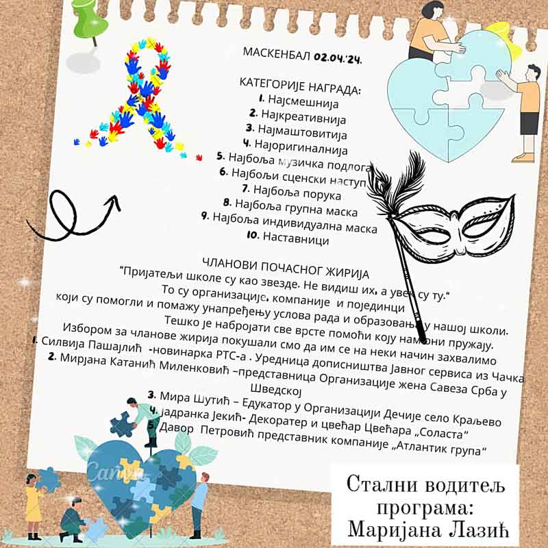 апр 2 2024 Mаскенбал поводом Светског дана особа са аутизмом Новости / 2. април 2024. Будите део нас!
